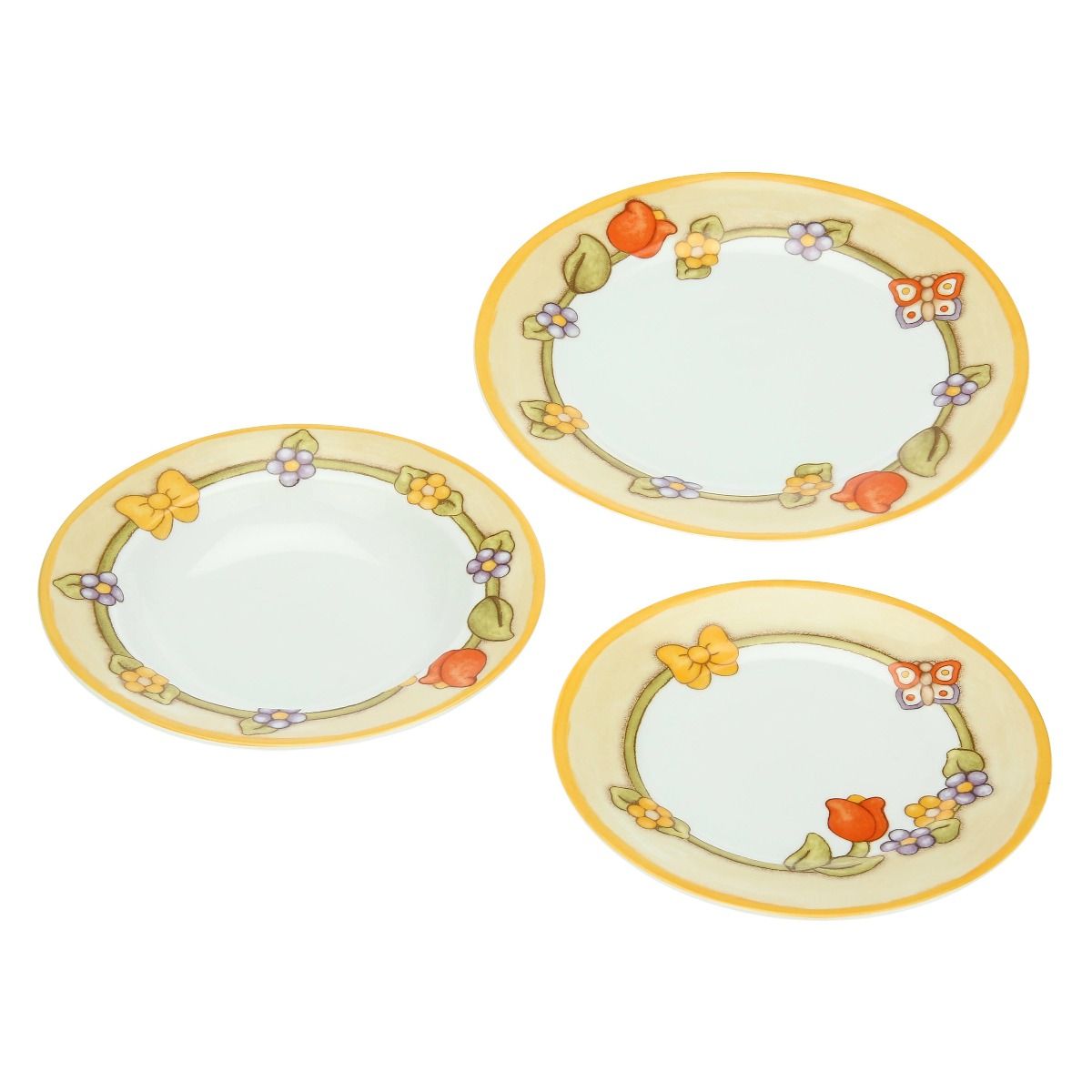 Misure: piatto fondo ? 20 cm; h 3,5 cm; piatto dessert ? 21 cm; piatto piano ? 27 cm